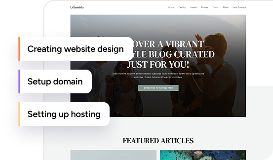 Forget plugins, domain setup/configuration, complex hosting settings, and jargon. We’ve automated the entire technical setup process. Just describe your vision, and we handle the rest including website building, domain and hosting.