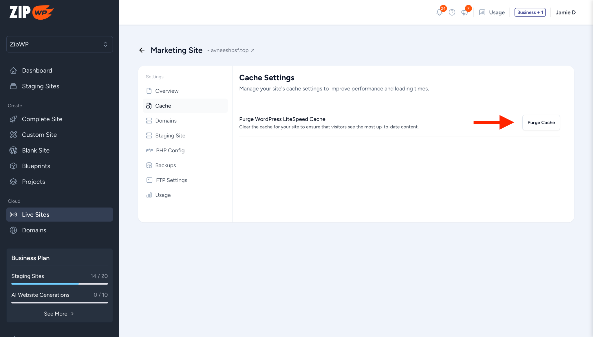 You can now instantly clear your site’s CDN cache directly from your ZipWP dashboard. This ensures your visitors always see the most up-to-date version of your site.
